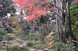 良い家には緑が似合うもの(左) 美しい残りモミジと初冬の庭(右)