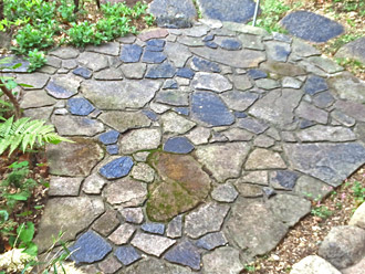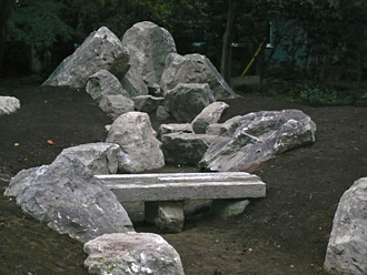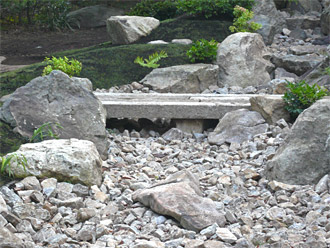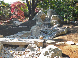 学芸大学日本庭園 - 植栽前の滝口と流れ石組