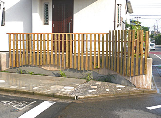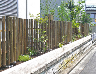 花壇スペースのある木柵