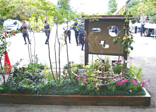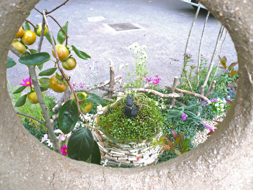 土塀のまんまるを覗くと、あなたはお月様の視点に。